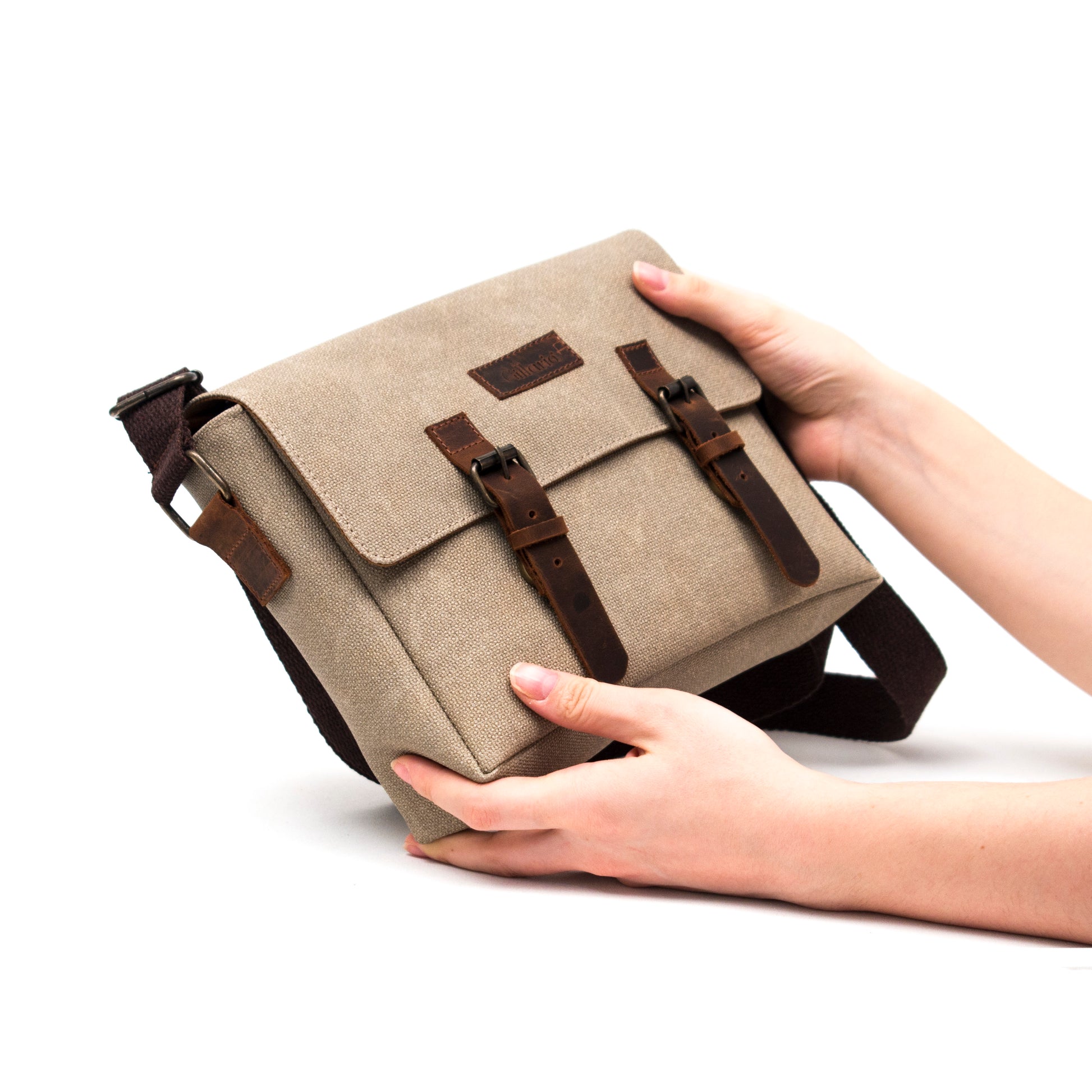 Gillario Kanvas - Deri Bej Postacı Çanta - Design01