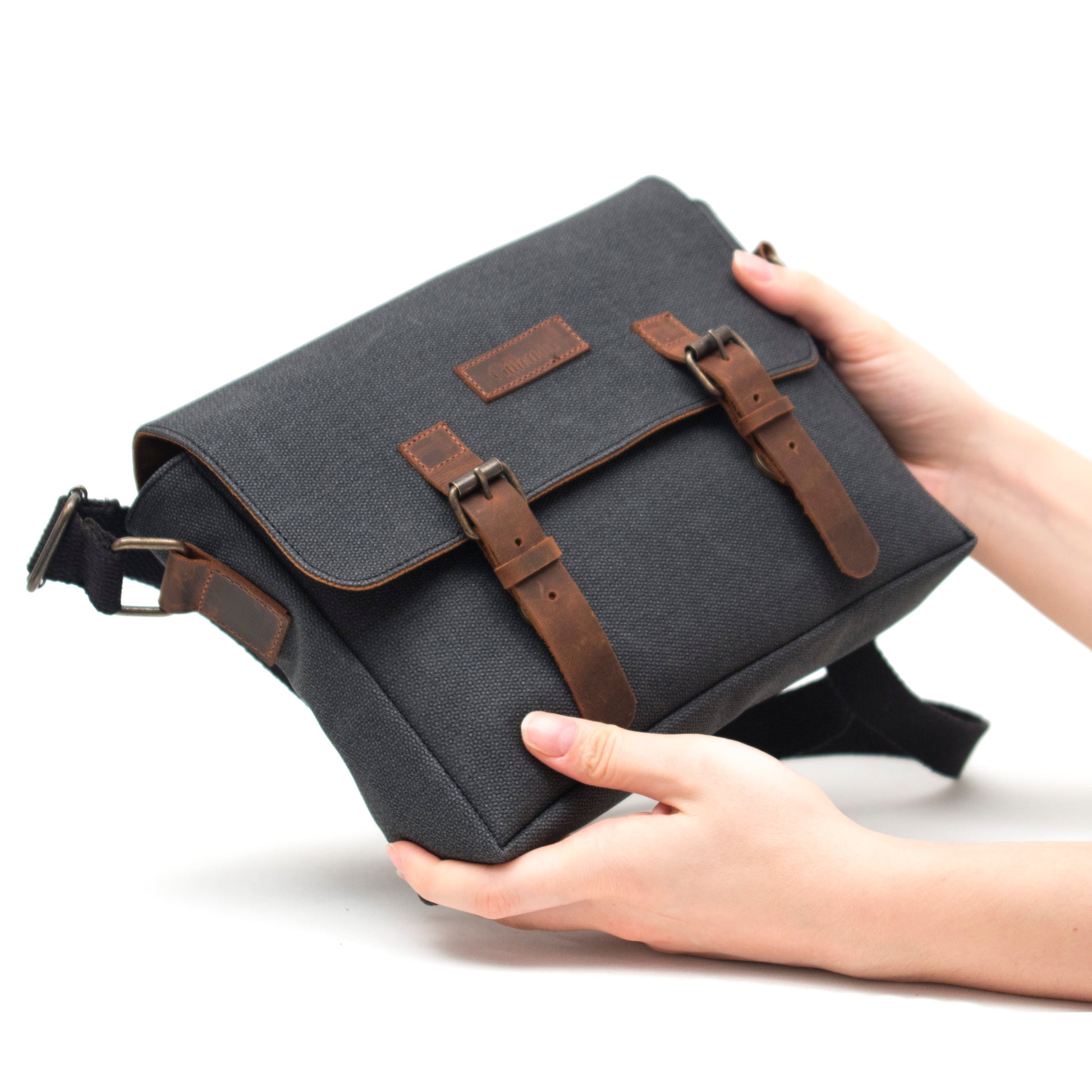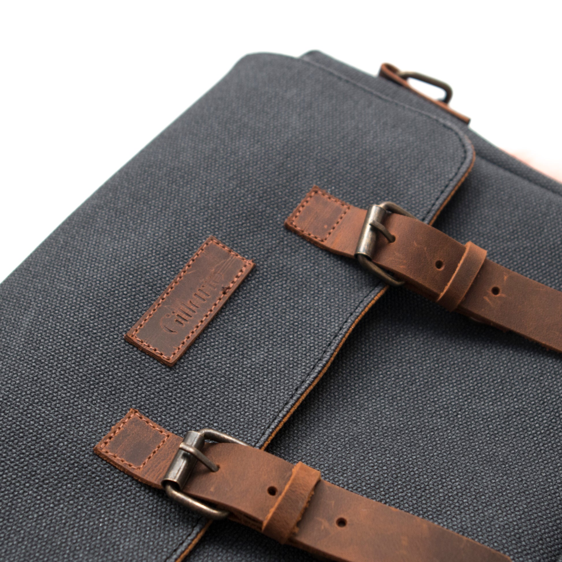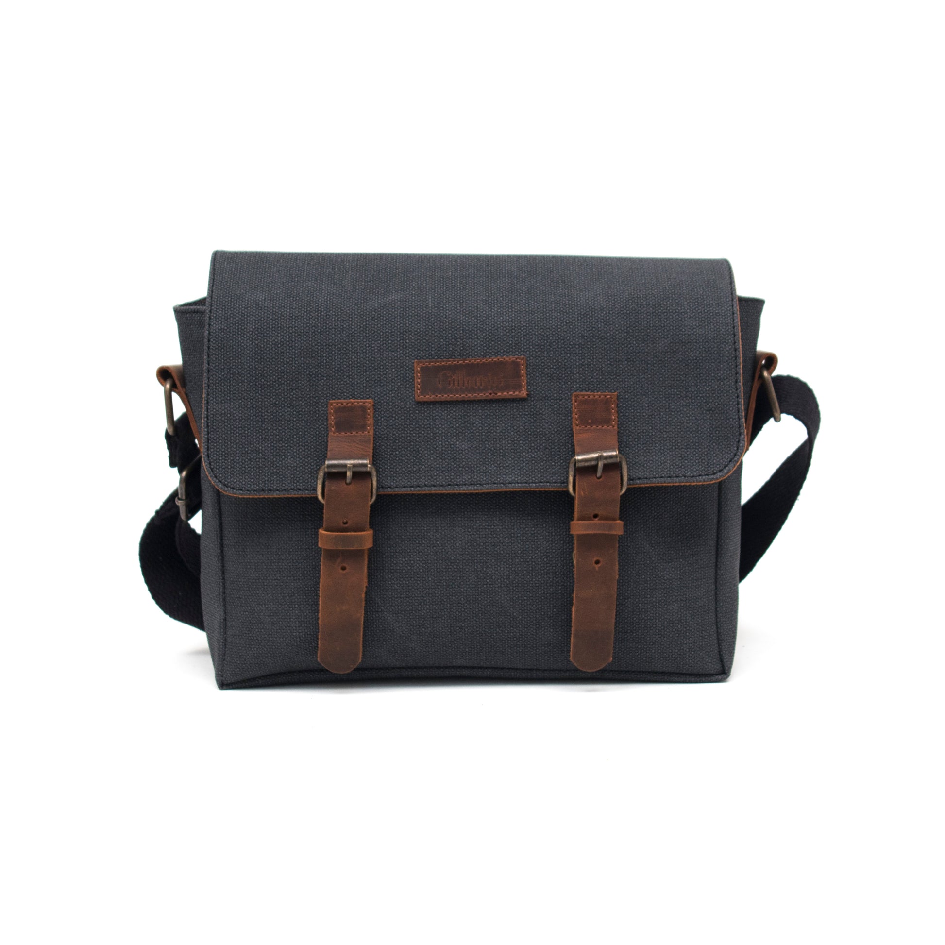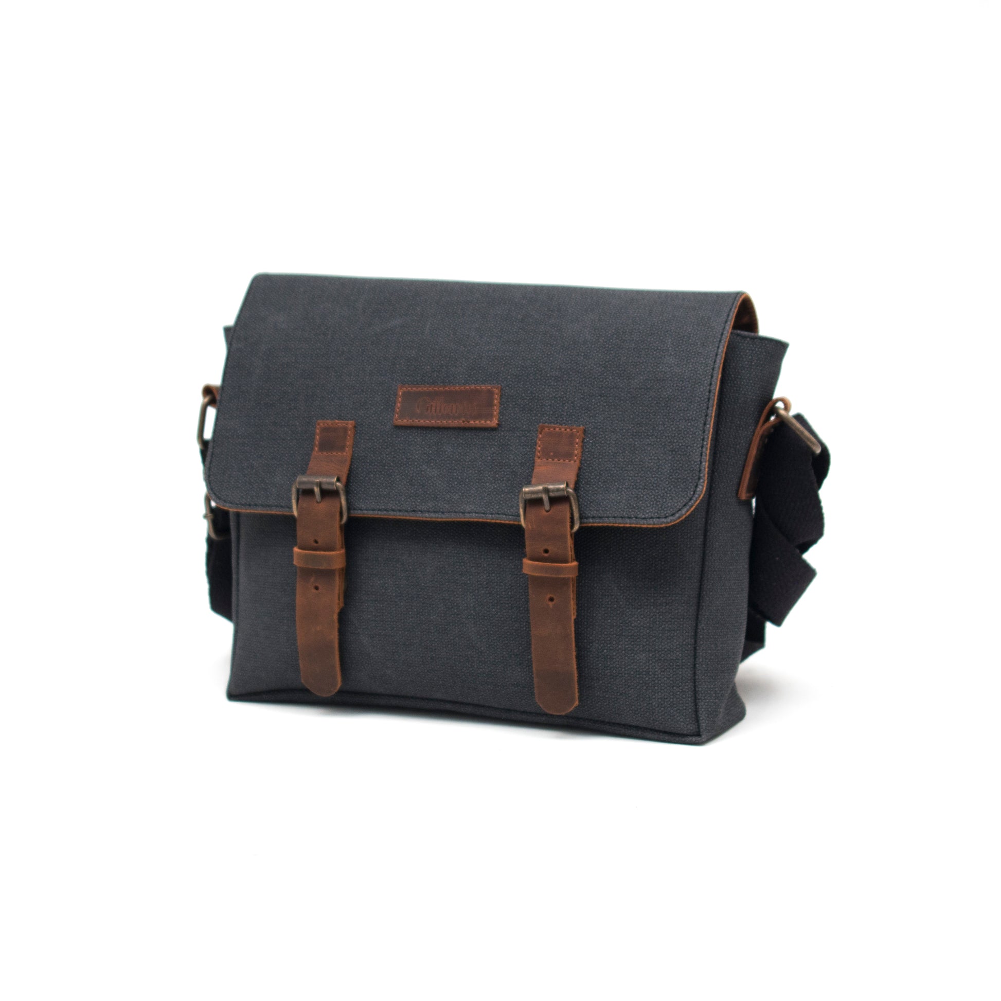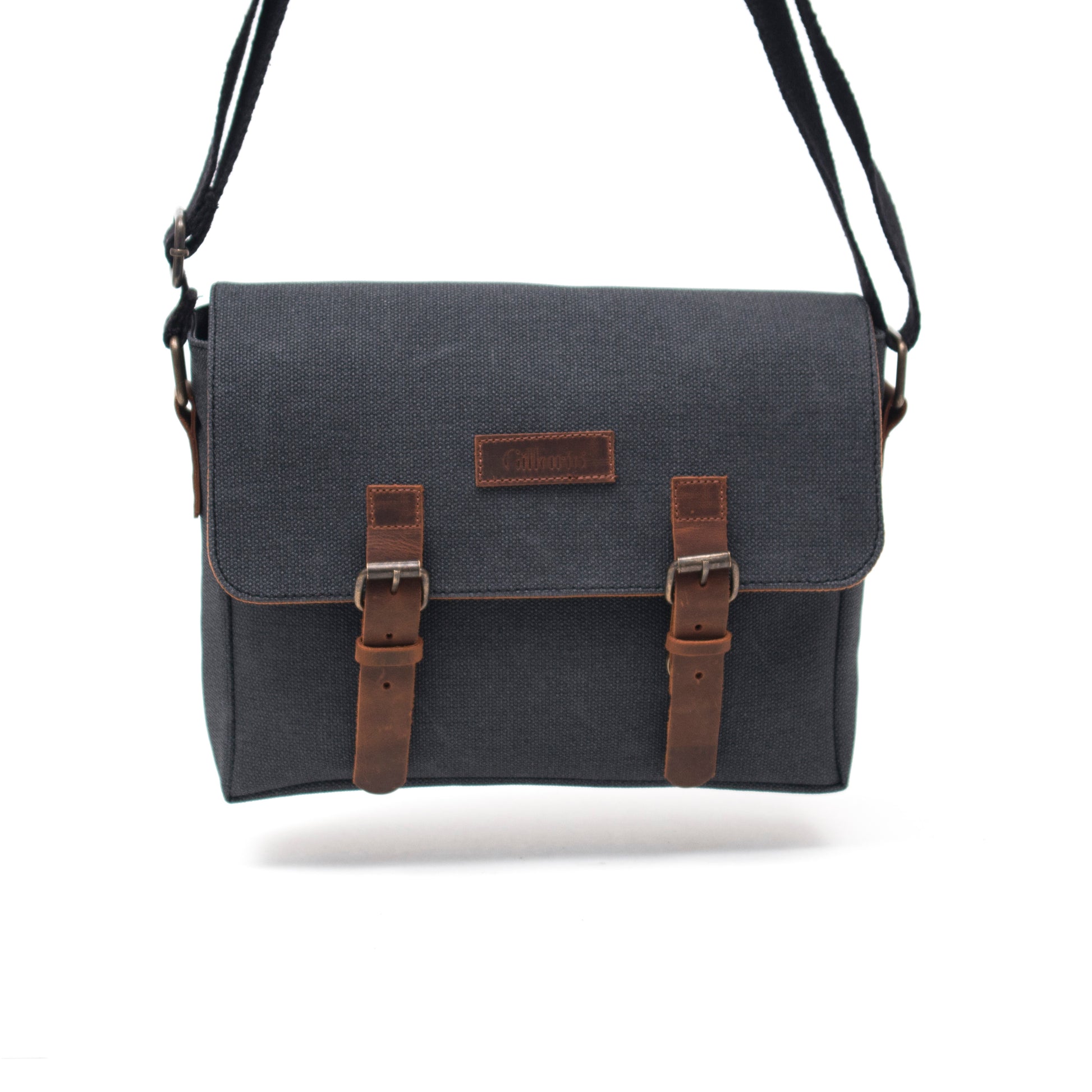 Gillario Kanvas - Deri Siyah Postacı Çanta - Design01
