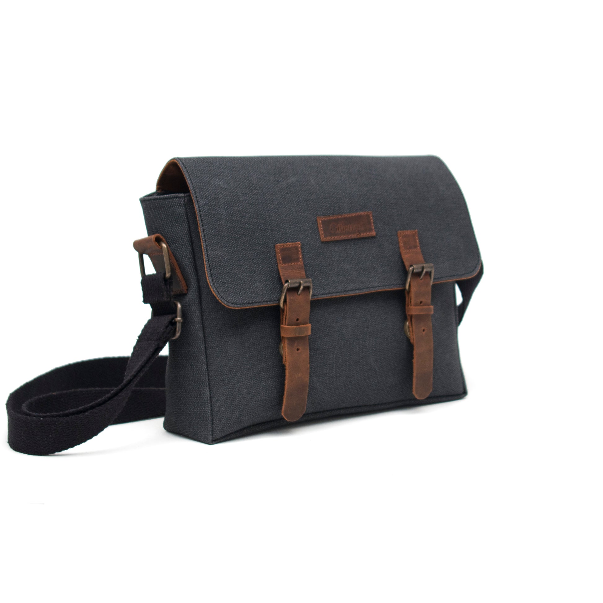 Design01 Kanvas - Deri Siyah Postacı Çanta