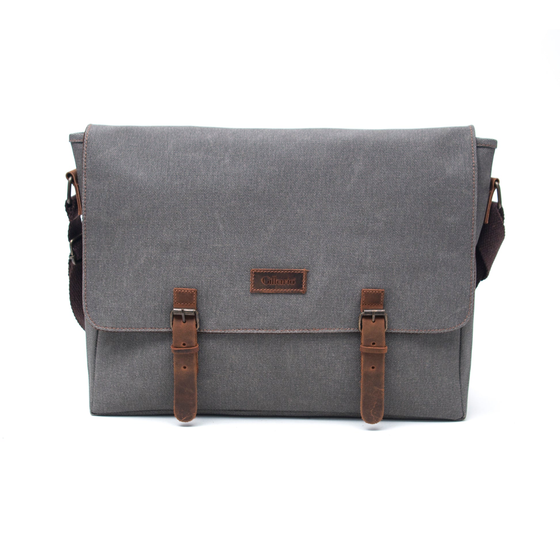 Gillario Kanvas Deri Gri 15.6 Inch Postacı Laptop Çantası - Design03