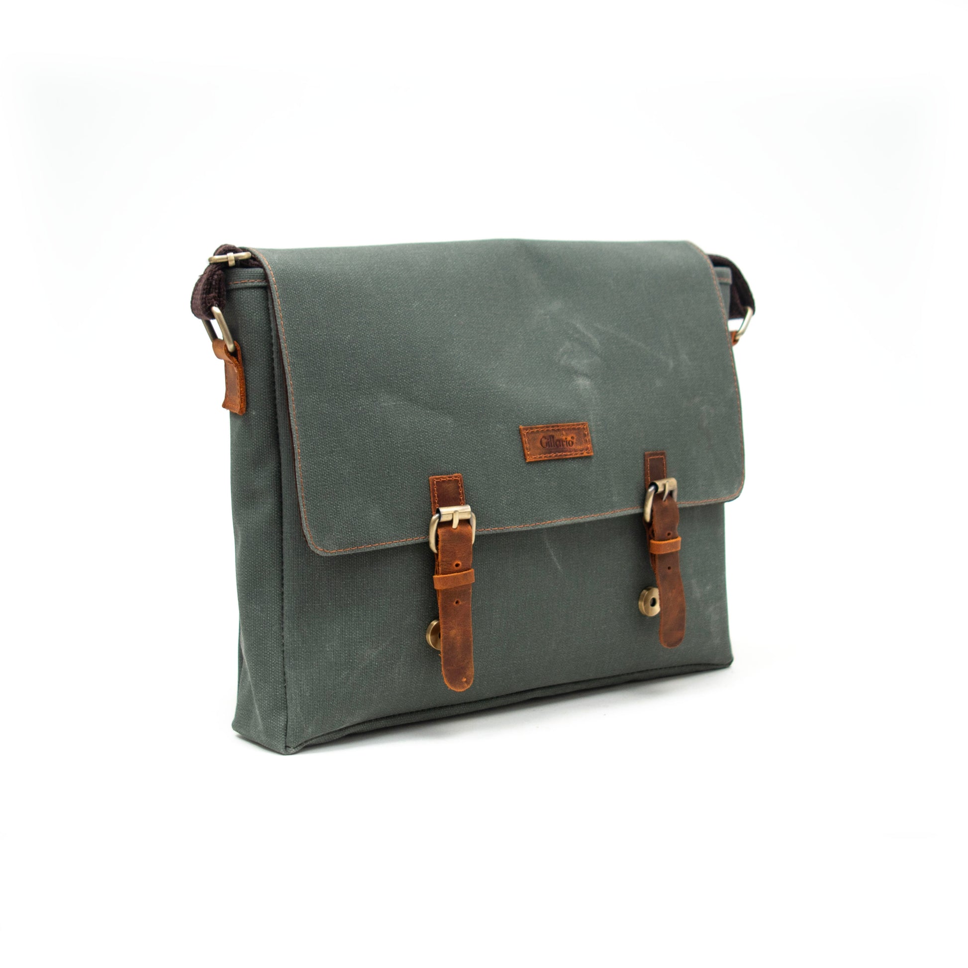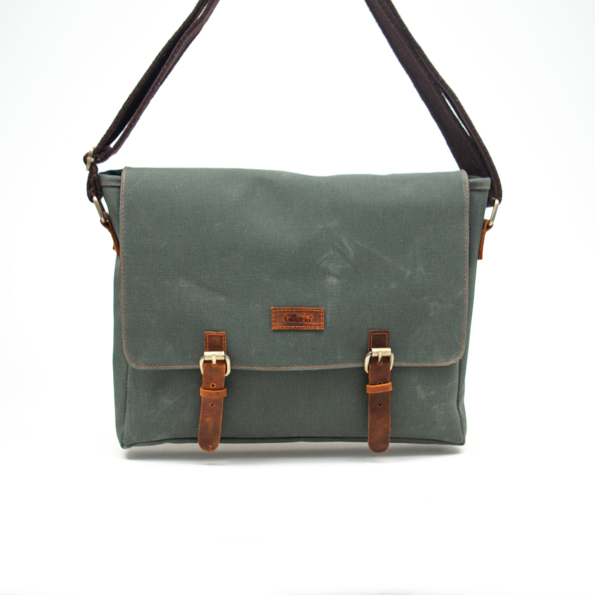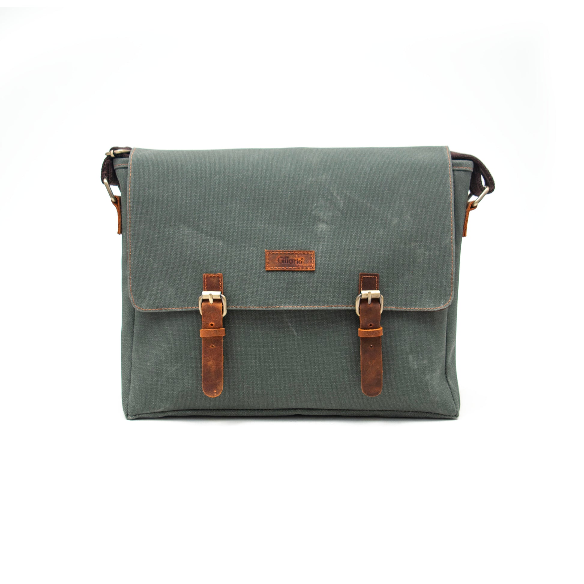 Gillario Kanvas Deri Haki Yeşil 15.6 Inch Postacı Laptop Çantası - Design03