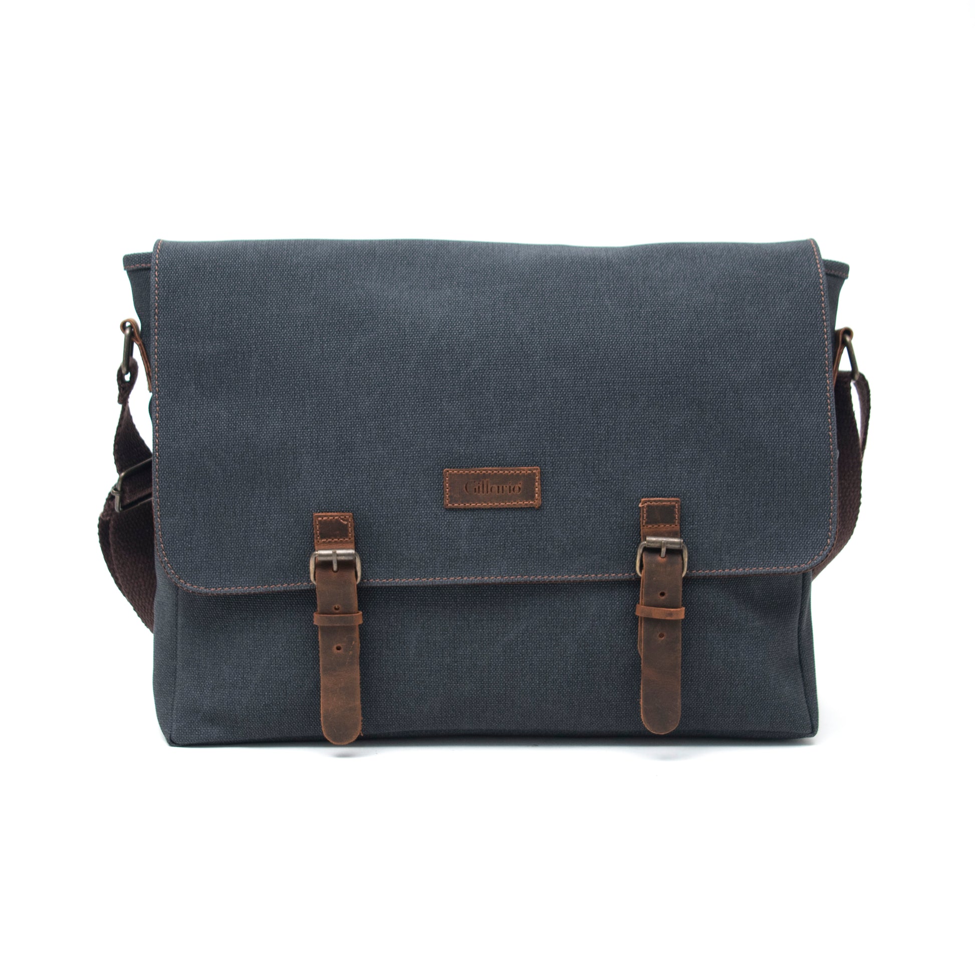 Gillario Kanvas Deri Siyah 15.6 Inch Postacı Laptop çantası - Design03