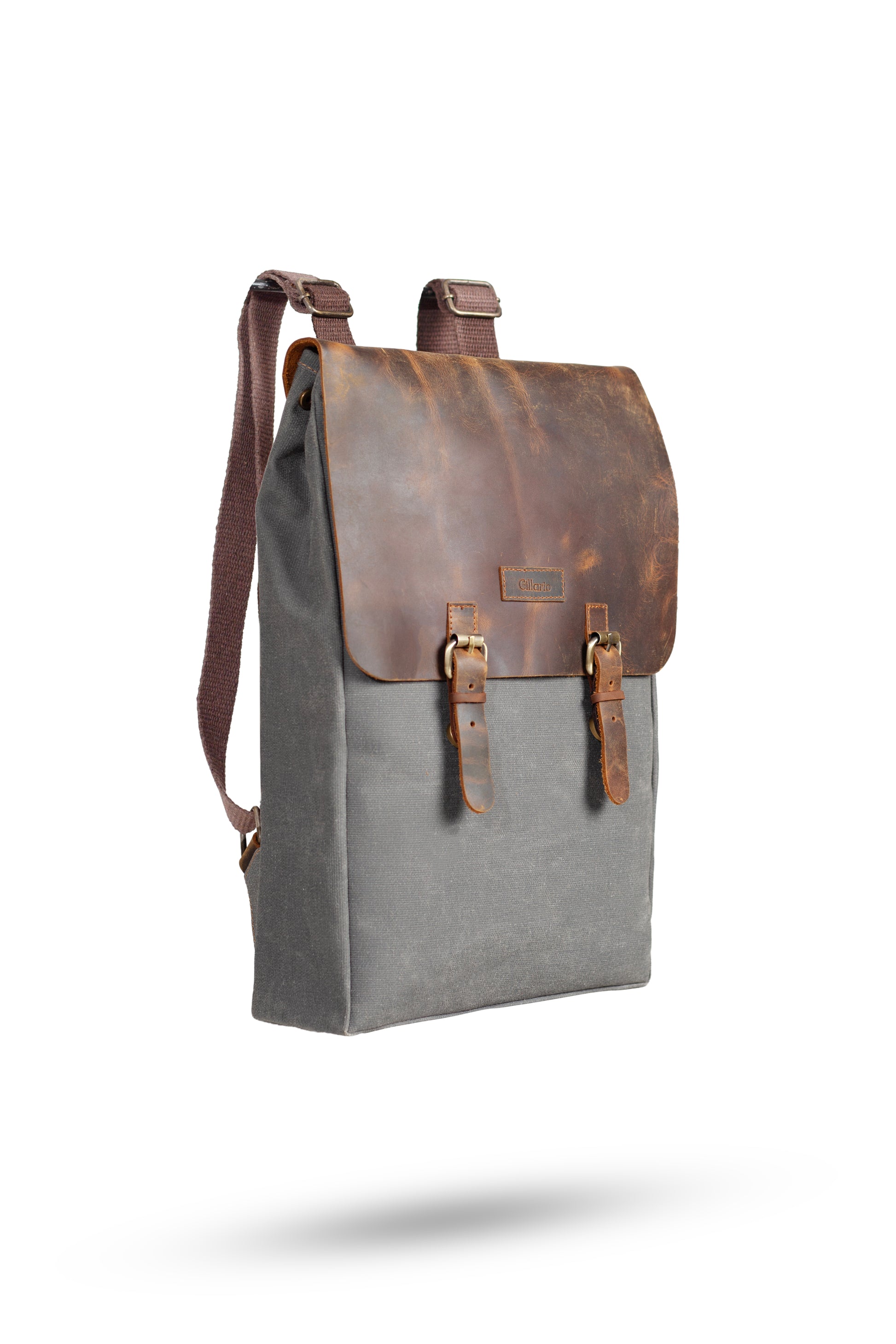 Gillario DESIGN02 15.6 Inch Gri Kanvas (Deri Kapak) Laptop Sırt Çantası