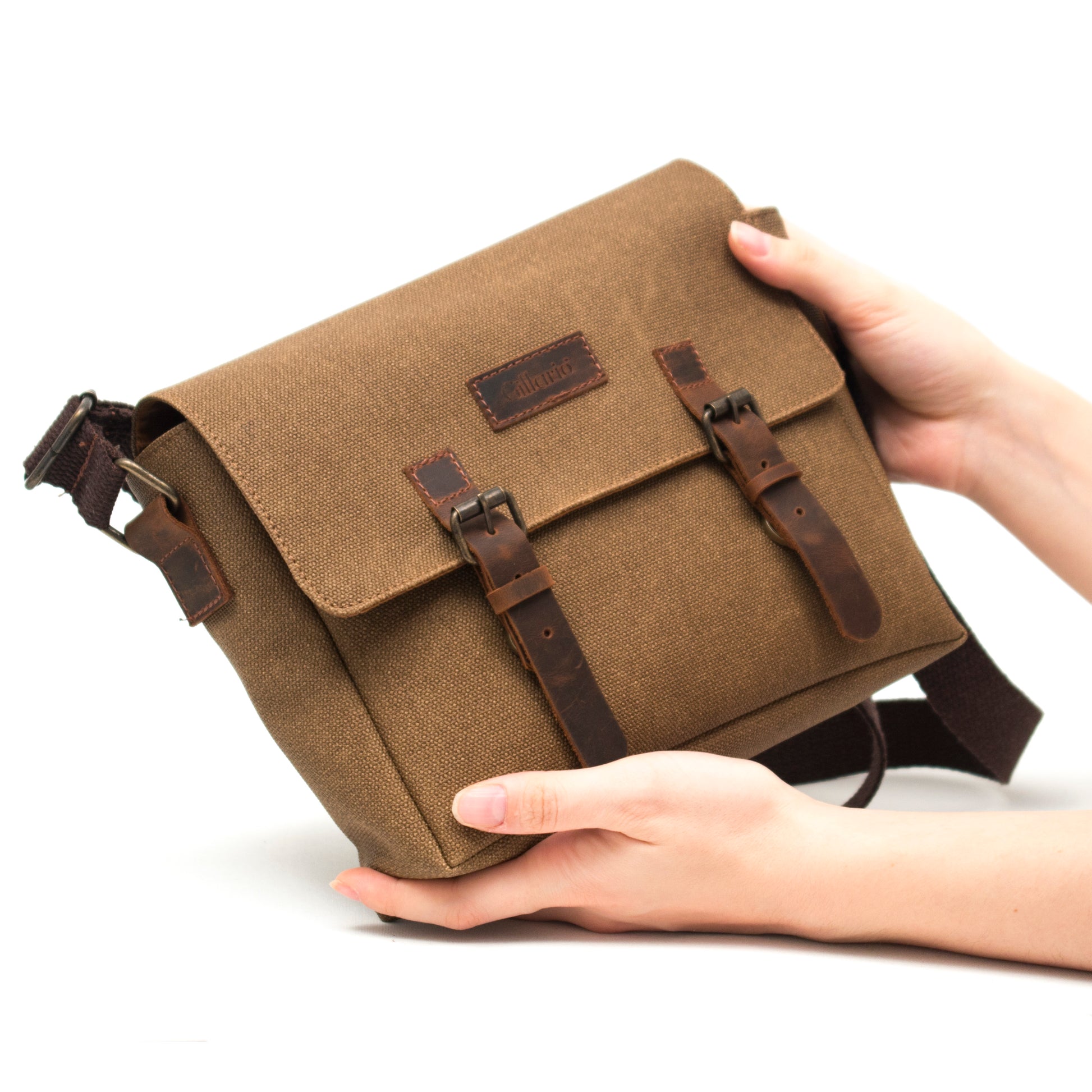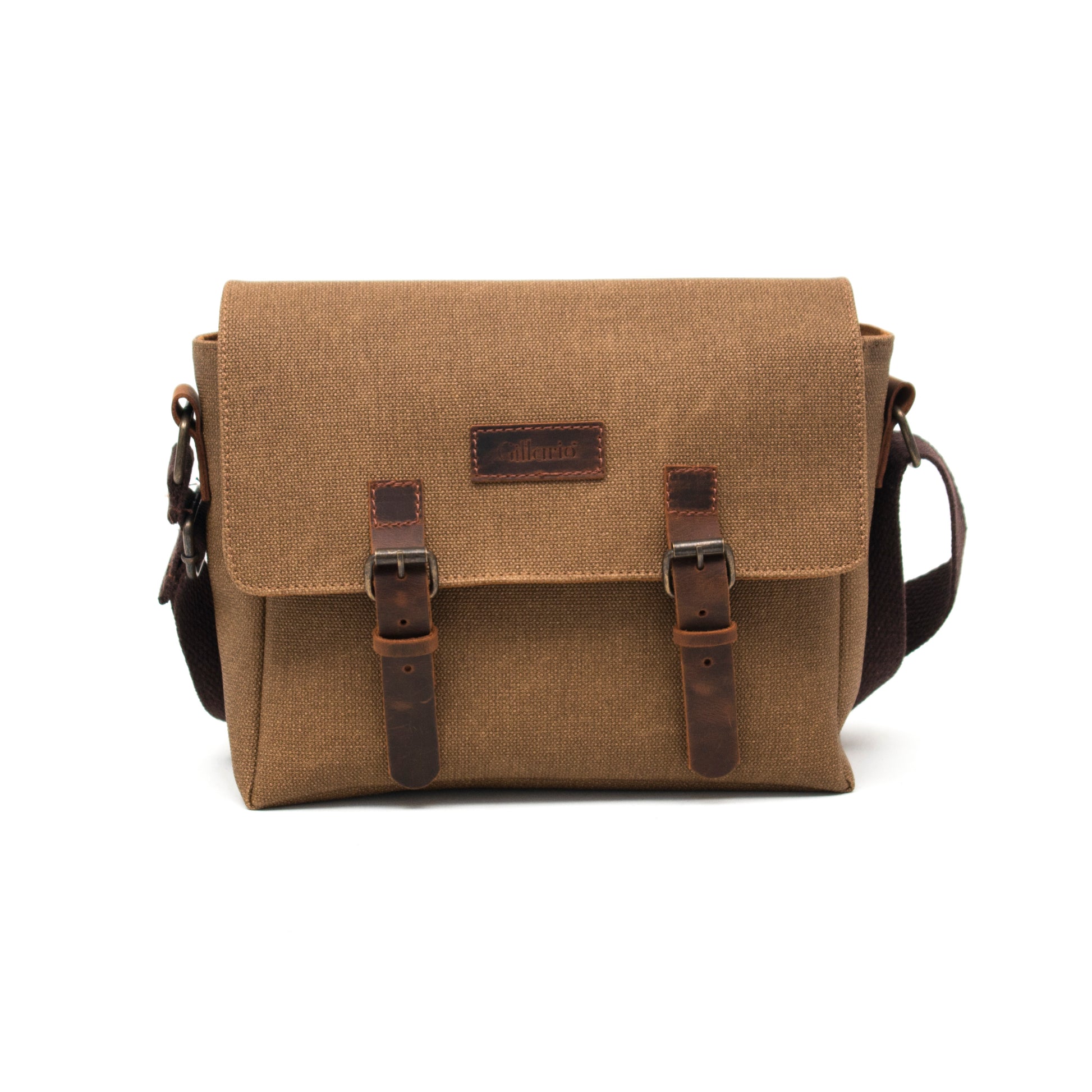 Gillario Kanvas - Deri Sütlü Kahve Postacı Çanta - Design01